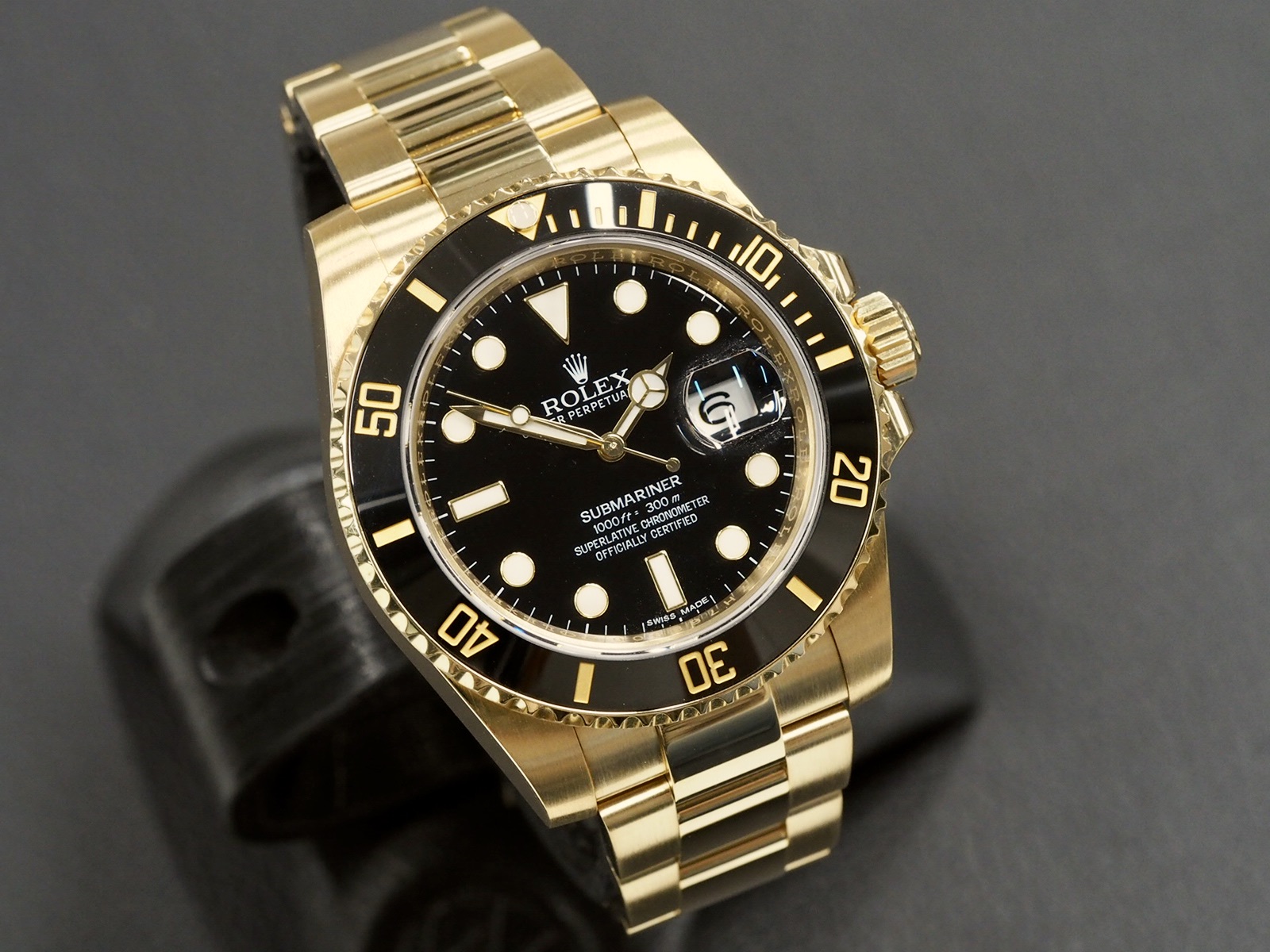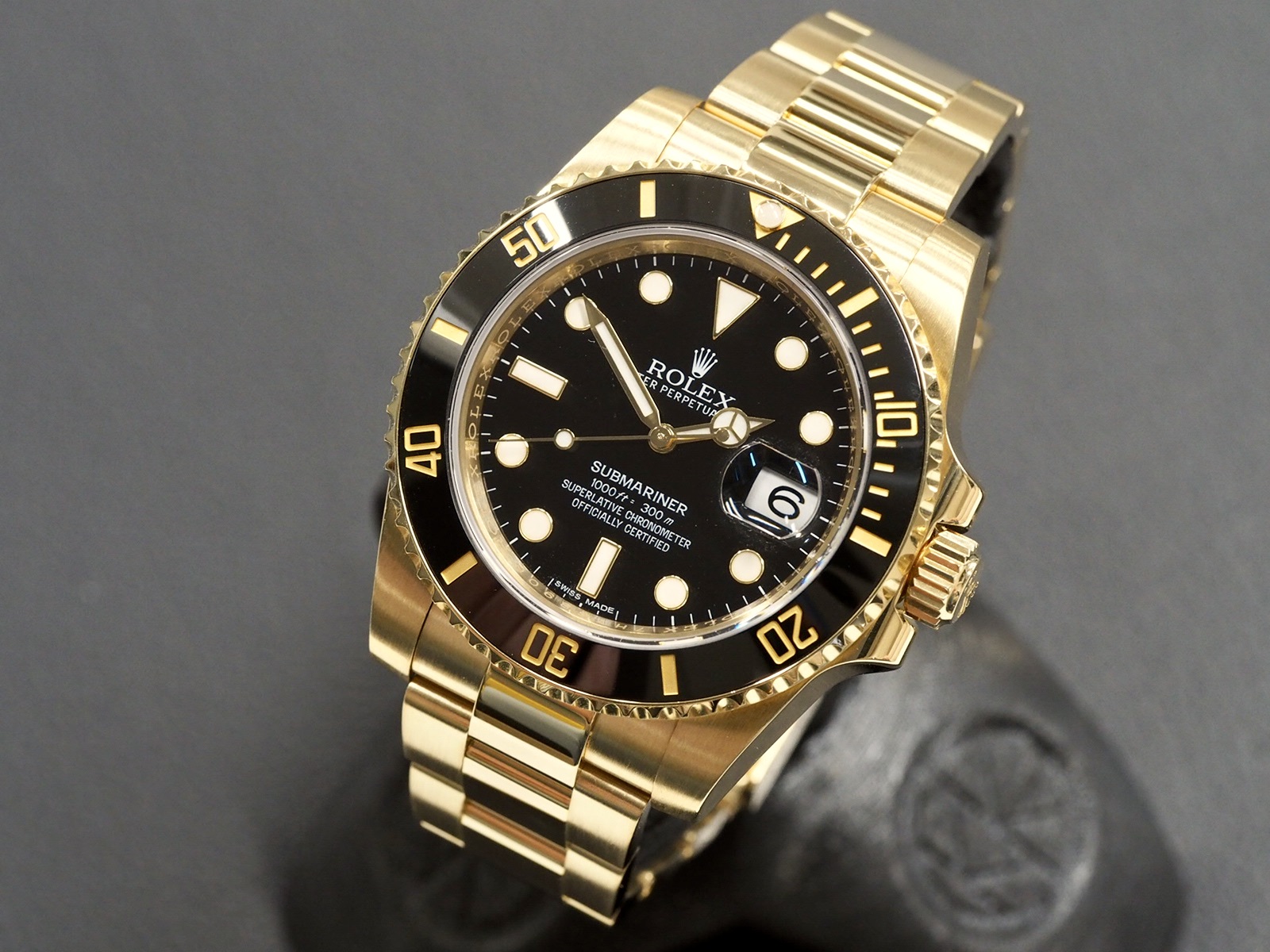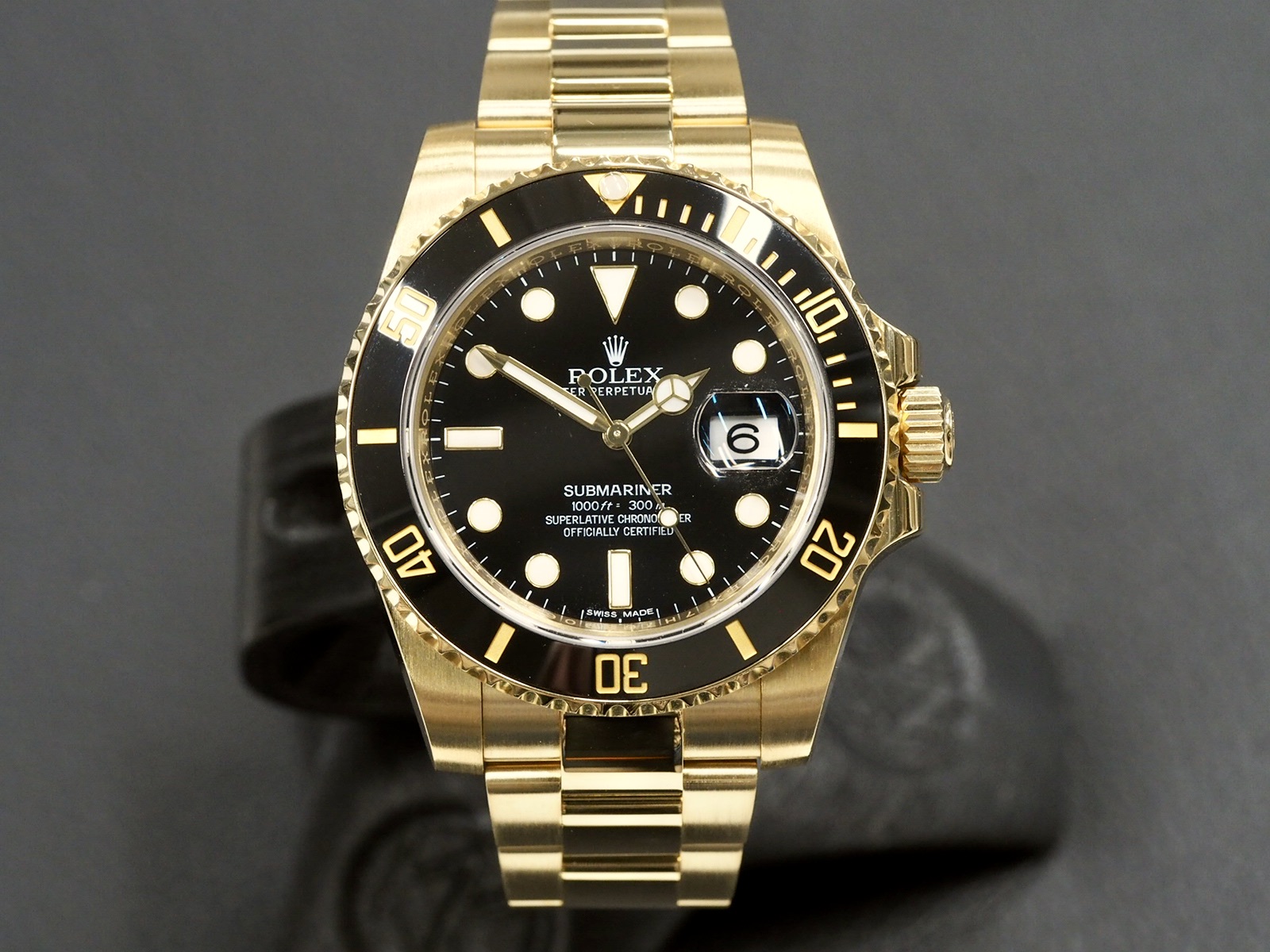 An excellent condition 40mm Submariner in yellow gold. The watch comes with original boxes and papers which are dated 10/2016. Serviced 2/2026.