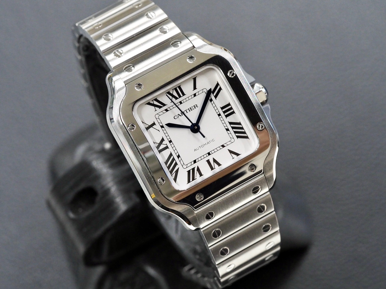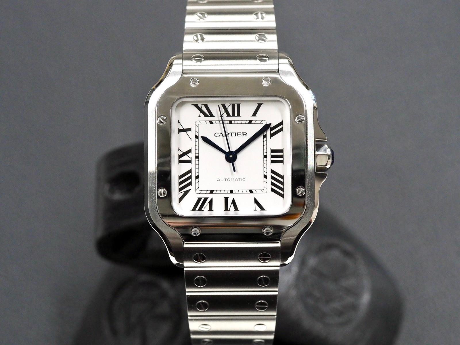 Upea ja hienokuntoinen 35mm Cartier Santos teräskuorella ja klassisella valkoisella taululla. Upea ja tyylikäs kello, miellyttävässä medium koossa. Pikalukituksen ansiosta rannekkeen vaihto on helppoa ja nopeaa. Mukana paketissa myös tyylikäs ja hienosti kelloon sopiva Cartier kroko-ranneke. Complete set 9/2025. Valmistajan laajennettu takuu voimassa 9/2033 asti.