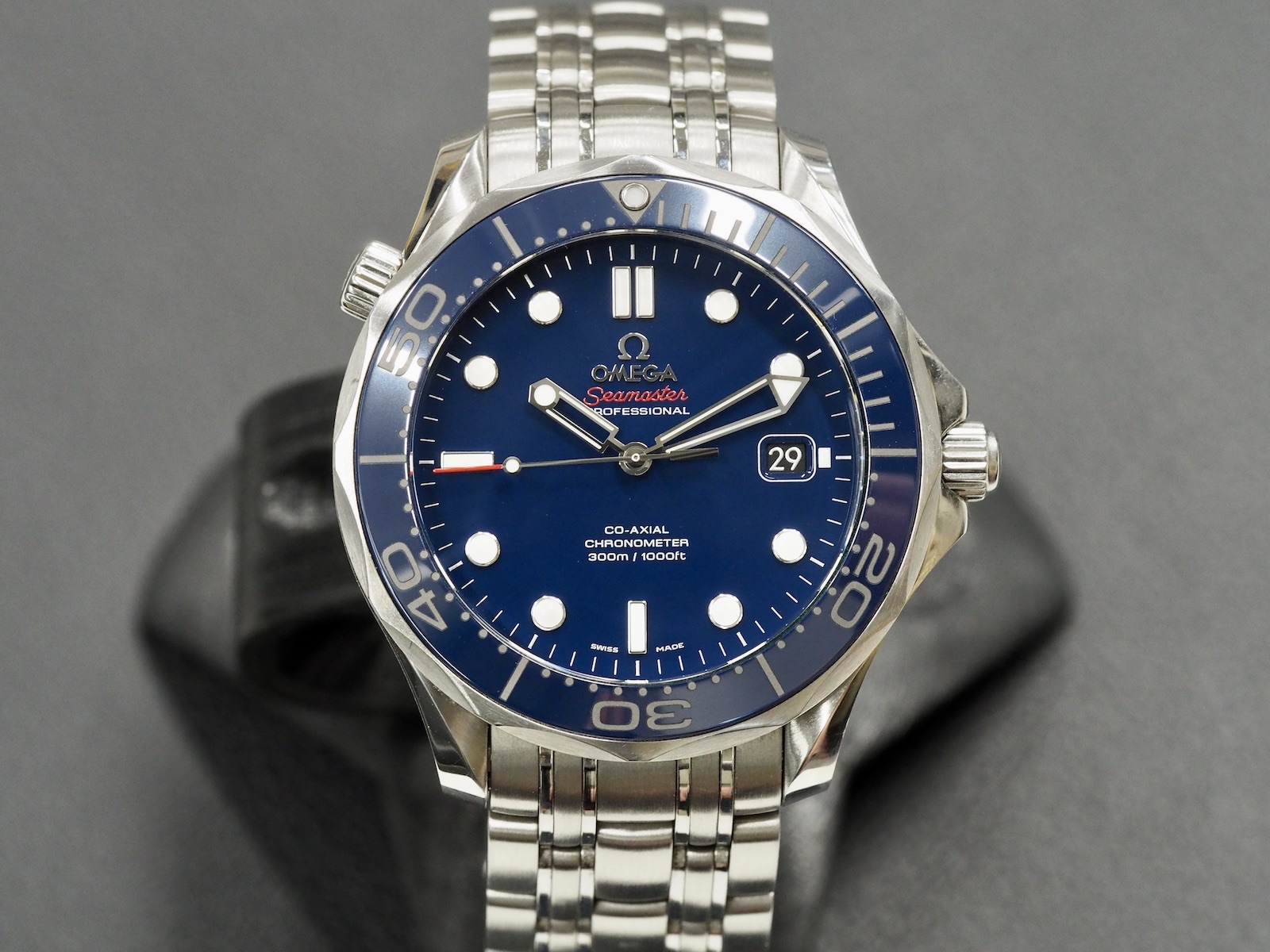 Upea ja siistikuntoinen 41mm Omega Seamaster 300m Diver, ref. 21230412003001. Todella hienolla kiiltäväpintaisella sinisellä taululla varustettu Omega Seamaster. Complete set 3/2018. 12kk takuu.