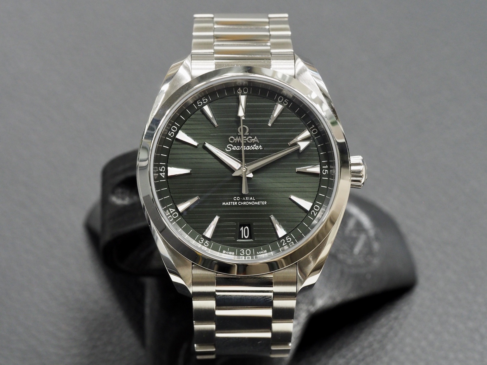Upea ja hienokuntoinen 41mm Omega Seamaster Aquaterra, ref. 22010412110001. Upealla vihreällä taululla varustettu Aquaterra on tyylikäs kello, joka soveltuu hienosti päivittäiseen käyttöön ja näyttää hyvältä myös virallisemmassa asussa. Complete set 7/2023. Valmistajan takuu voimassa 7/2028 asti.