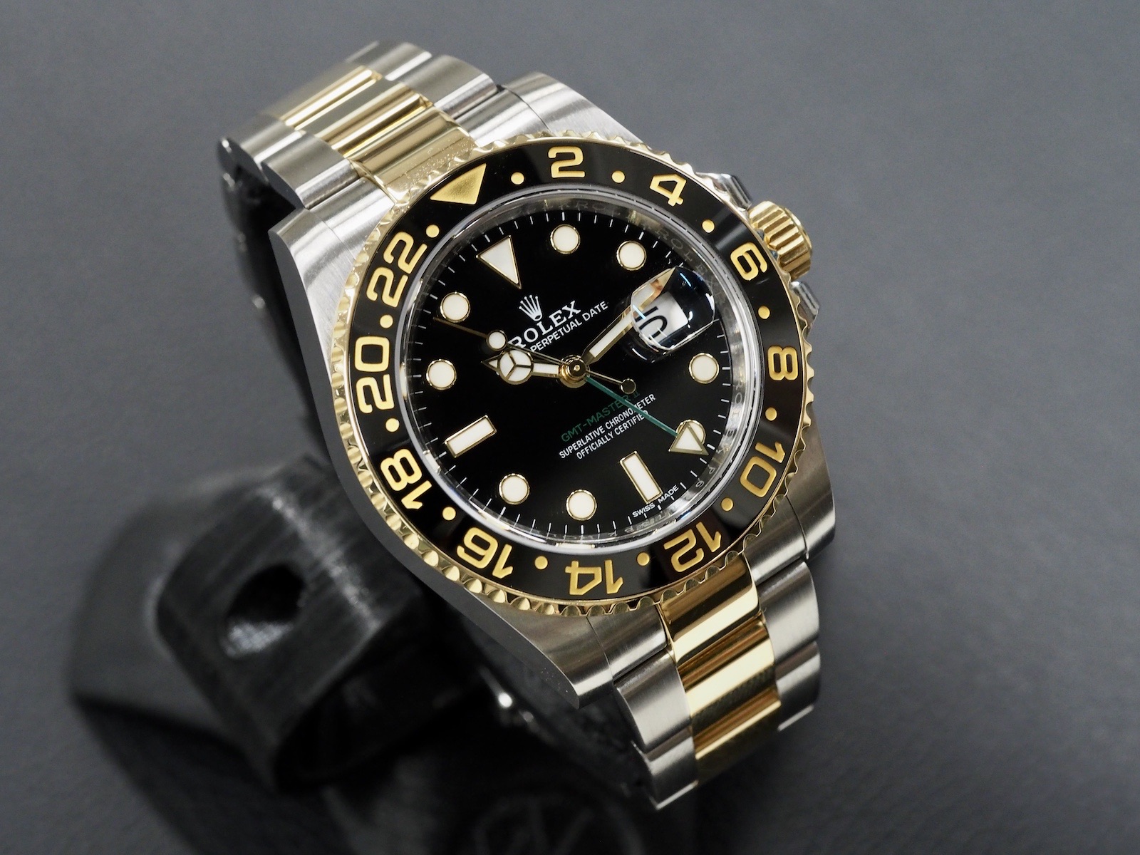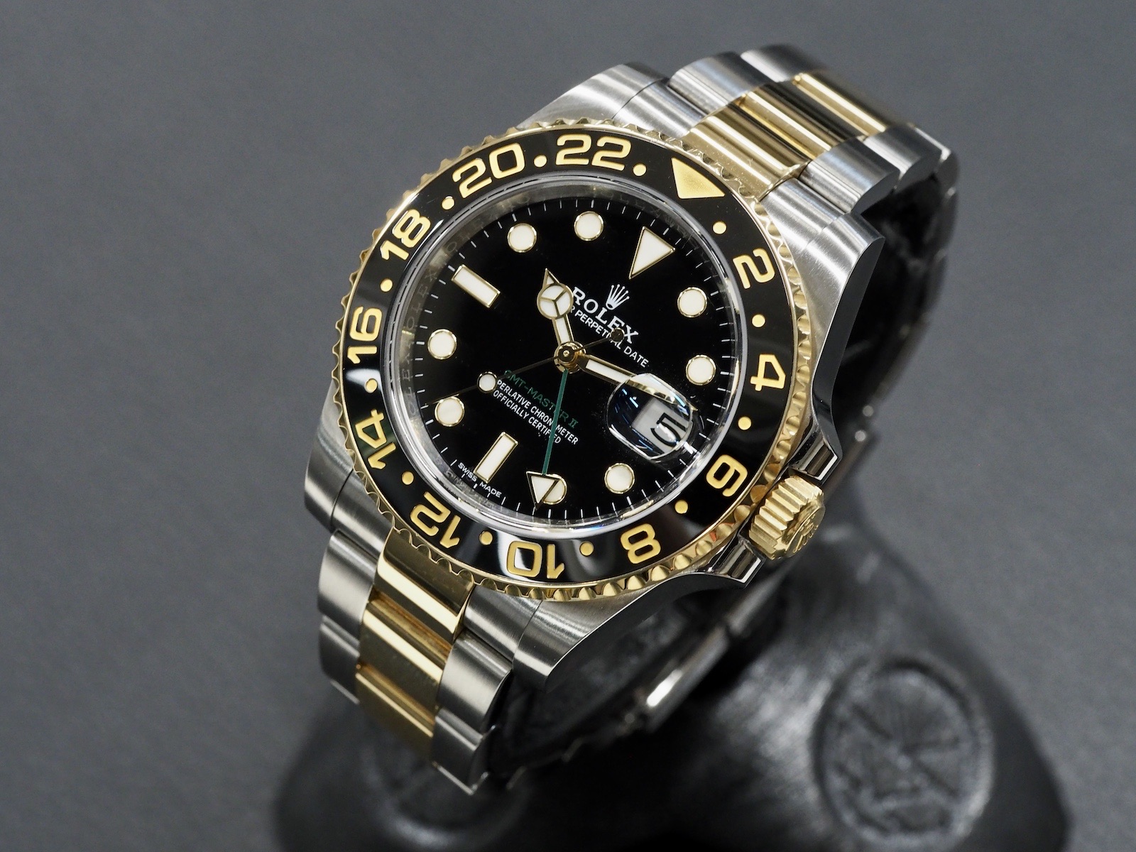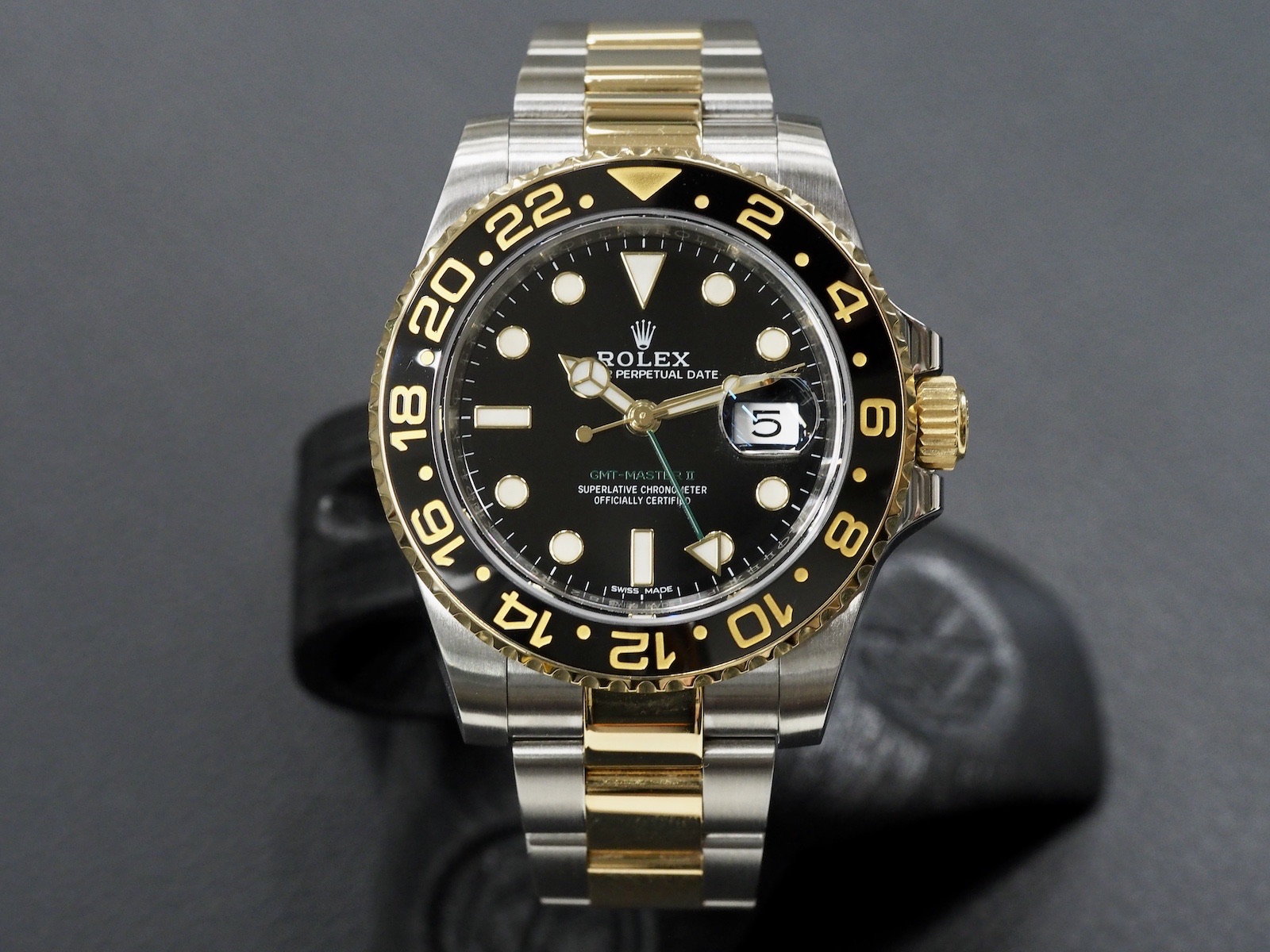 Great condition 40mm GMT-Master II in yellow gold and steel. Now out of production and a very interesting model with an automatic 3186 movement. Complete set 10/2017. Serviced 1/2026. 12 months warranty.