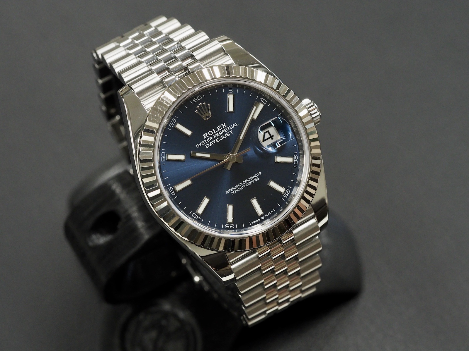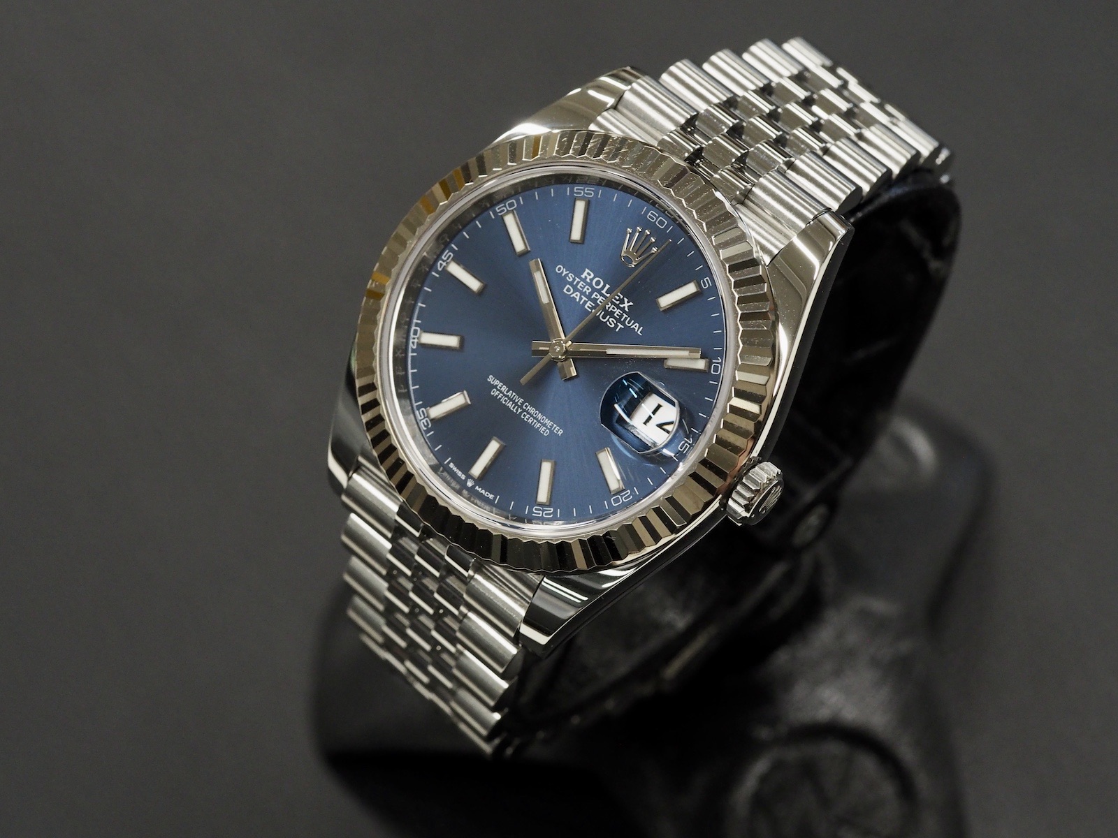 An good condition 41mm Datejust 41mm with a beautiful blue sunburst dial, white gold bezel and Jubilee bracelet. Complete set 12/2019. 12kk takuu.