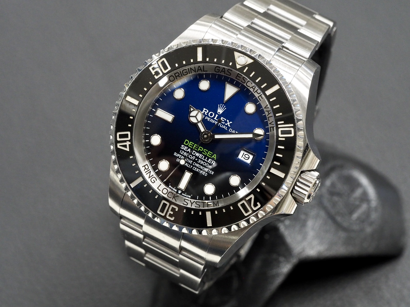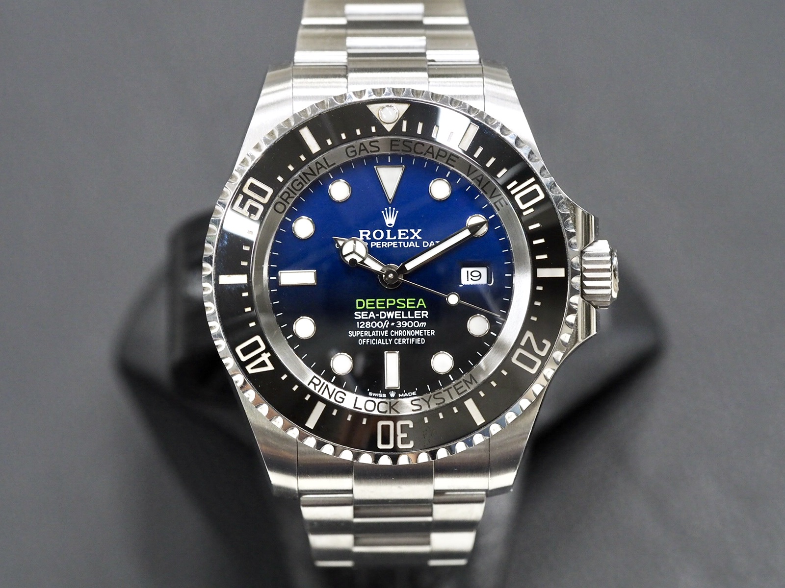Hienokuntoinen 44mm Deepsea uudella 3235-automaattikoneistolla, vanhaa mallia leveämmällä ja mukavammalla rannekkeella ja hienolla sinimustalla liukuväritaululla. Kuoren muotoilu on vanhempaa mallia sulavampi ja koostaan huolimatta kello tuntuu ranteessa mukavalta. Tiiviysluokitys 3900m, eli kello kestää rajummatkin vesileikit. Complete set 6/2021, takuu päällä 6/2026 asti.