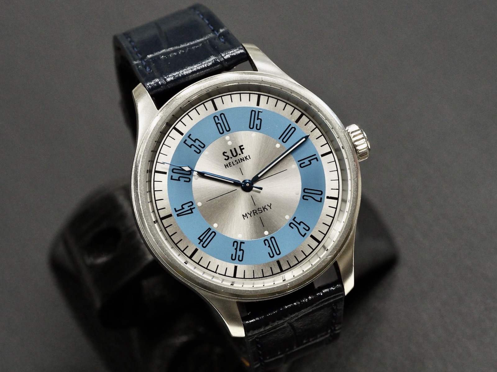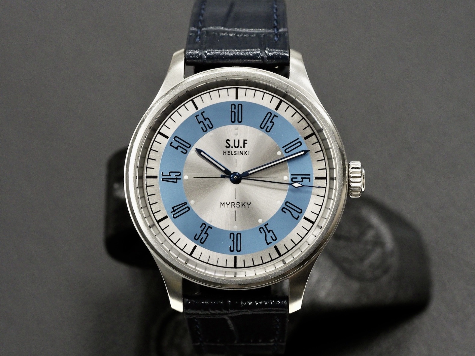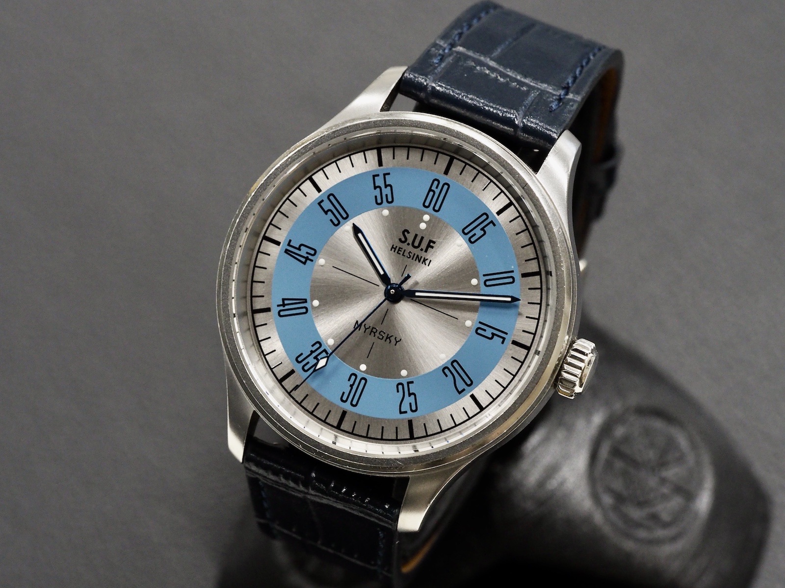 A great condition SUF Myrsky ”Airforce”. SUF Myrsky with beautifully coloured dial. Complete set 8/2018. 12 months warranty.