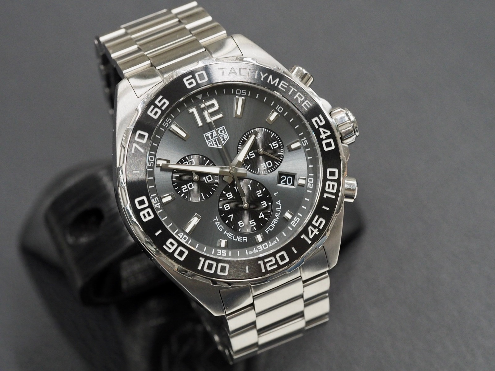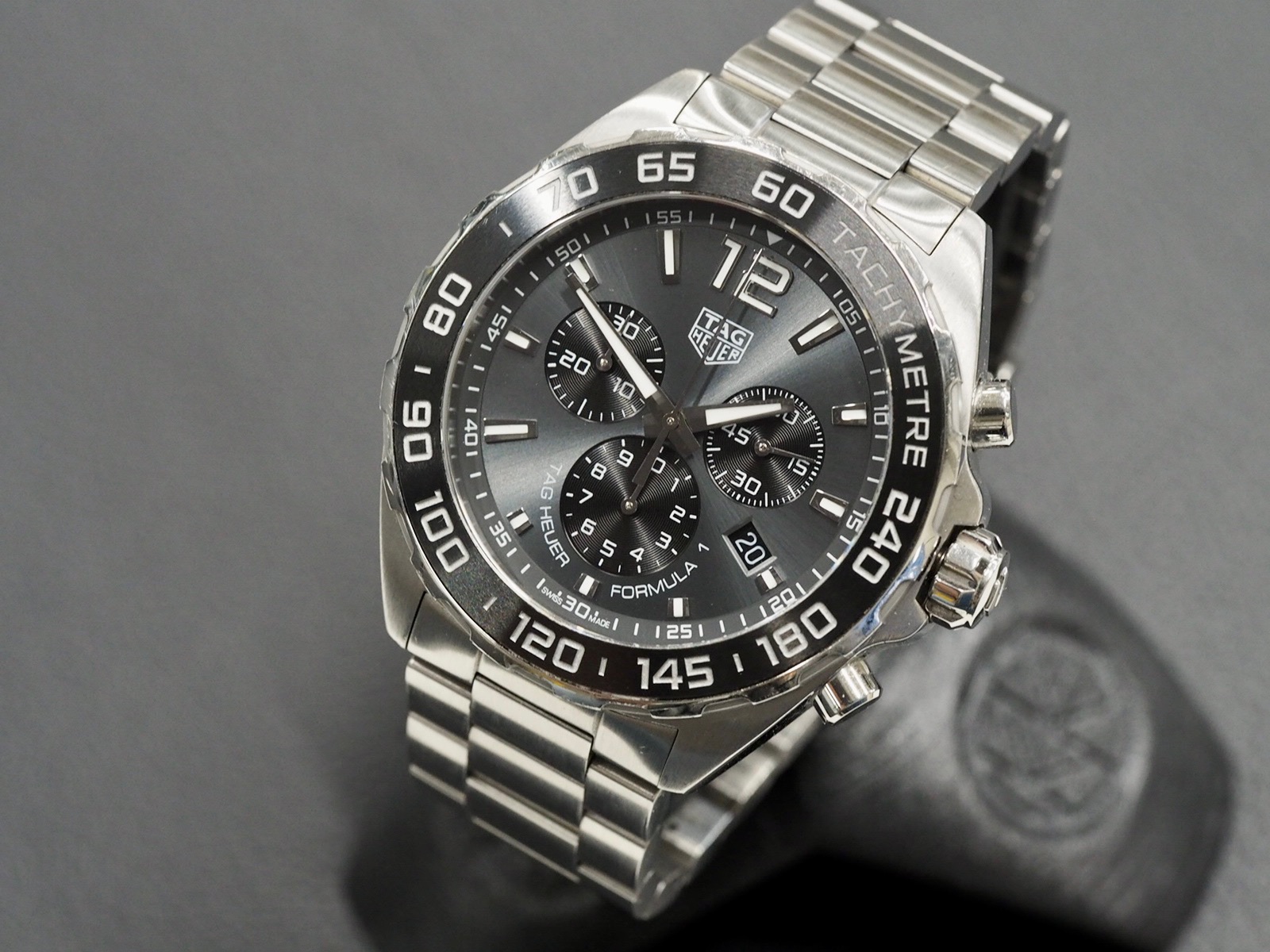 A great condition 43mm Tag Heuer Formula 1 quartz chronograph, ref. CAZ1011. Stylish grey dial Formula 1 chronograph that it very comfortable on wrist. Watch only. 12 months warranty.