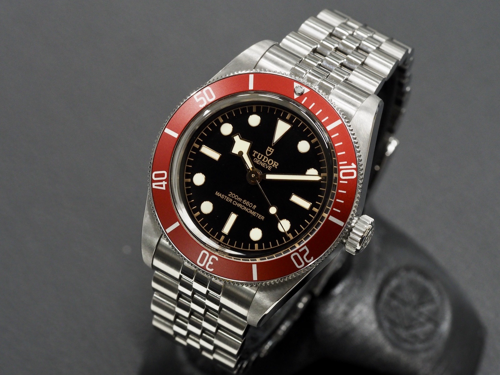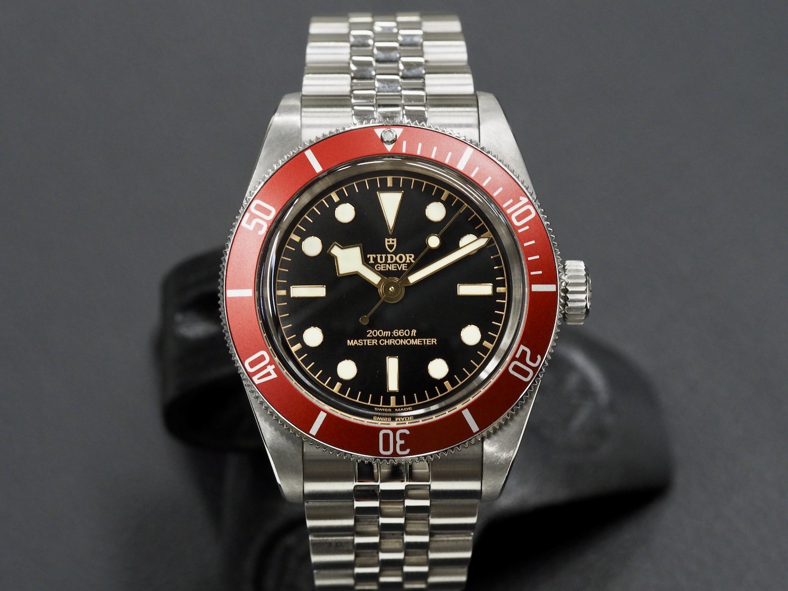 Great condition 41mm Tudor Black Bay, ref. 7941a1a0ru. Beautiful Tudor Black Bay with red bezel and jubilee-bracelet. Complete set 7/2023. Manufacturers warranty valid until 7/2028.