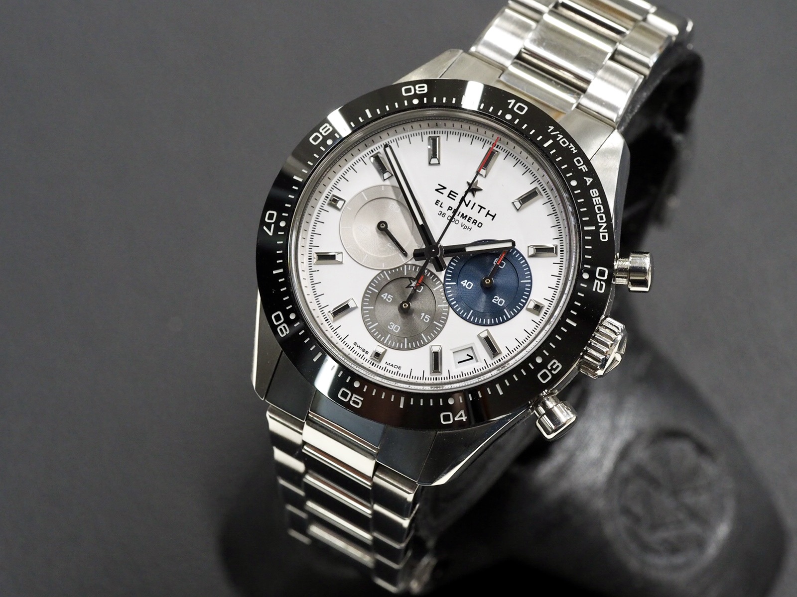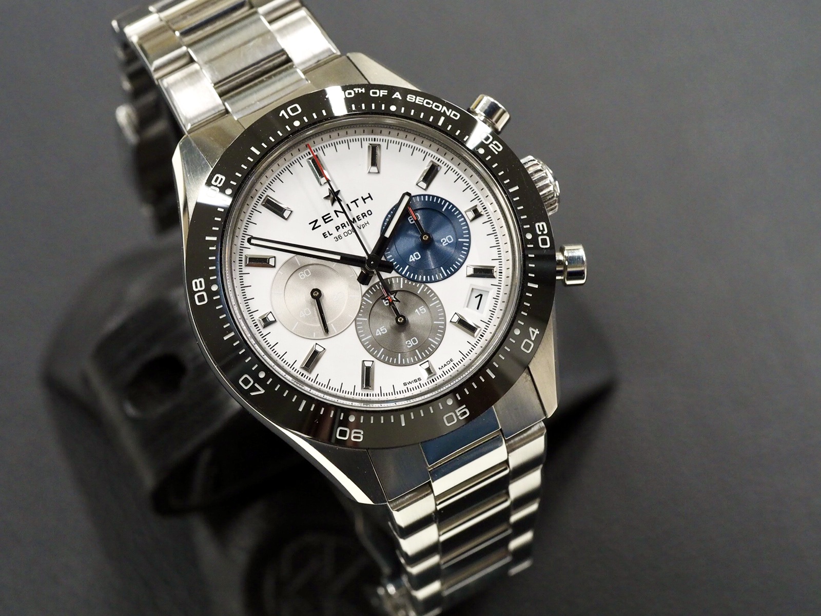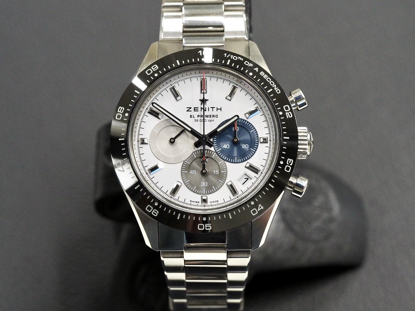 A very nice Zenith Chronomaster Sport in white. This is a complete set with papers dated 12/2021.